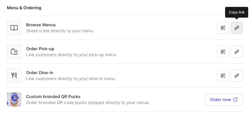 Grab your ordering link from the Marketing ➜ QR Codes & Links section in your Bopple Back Office.